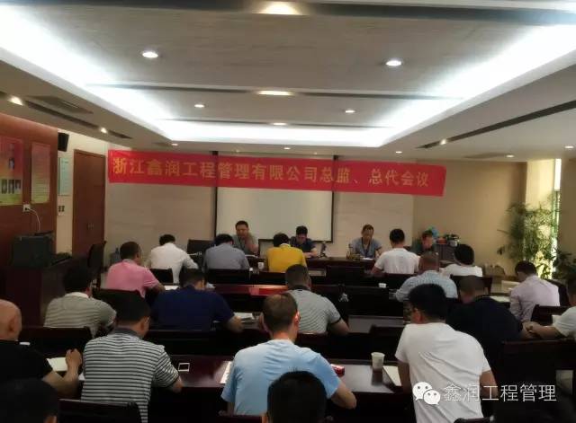 浙江鑫潤工程管理有限公司召開總經(jīng)理辦公室會議。公司董事長錢軍主持會議并作重要講話,董事、總經(jīng)理鄭水達等成員出席會議,公司相關(guān)領(lǐng)導(dǎo)、各項目部負責(zé)人列席會議。 會議上強調(diào)公司員工要有專業(yè)、熱情、高效的服務(wù)核心價值觀,做到價值觀統(tǒng)一、理念統(tǒng)一,最大努力地搞好結(jié)構(gòu)性調(diào)整,把專業(yè)結(jié)構(gòu)、業(yè)務(wù)結(jié)構(gòu)、組織結(jié)構(gòu)、人員結(jié)構(gòu)逐步調(diào)整到適應(yīng)市場新常態(tài)上來,提高公司抗風(fēng)險能力。